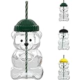 2025 New Bear Straw Cup, 20oz Bear Glass Cup with Lid and Straw, Bears Straw Cup...