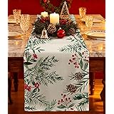 Miss Adola Christmas Table Runner Holly Berries - 13x72 Watercolor Winter Table ...